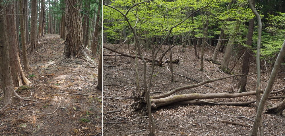 | 注 記 | 一般のガイドに類するような山行録ではありません。主だった各所の写真付きコメント、危険の告知以外、ルートファインディングの面白みを殺ぐような解説はありませんのでご了承下さい。 ルートは概ね判別可能な範囲ですが標識類はなく、各所にて地図等見て状況を見極められるだけの経験は必須です。 お決まりのテープ類はあっても植林用と思われ、登山用としてはほとんどありません。基本的に尾根の登り下りですが一般的お約束通り登りは高みを目指せばいいものの、下りは枝分かれする尾根を選んでいかなければなりません。上述通り地図読みは必須です。 毎度の決まり事となりますが、自己責任にて現場での判断を願います。当たり前ながら筆者踏破ルート外、または山行者のミスルート等による事故や危険は考慮していません。 熊出没注意!! 山頂でドコモ携帯使用できますがやや不安定です。他社は不明。 |